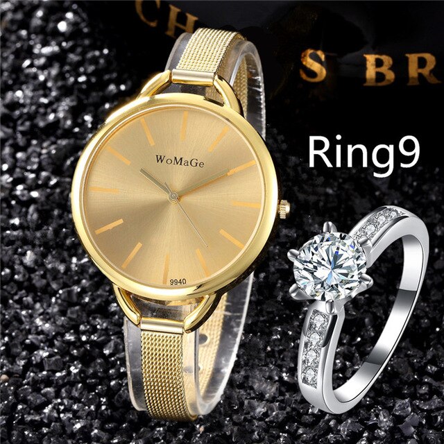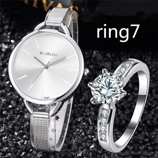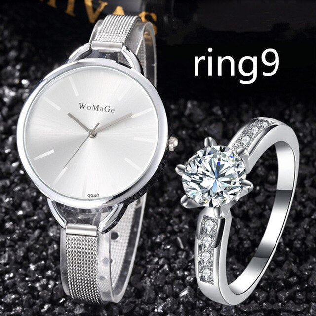 Style2: Bling Diamond Ring Jewelry Gold Sliver Bracelet Clocks